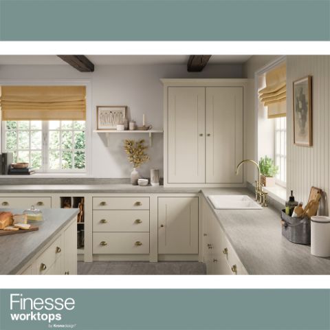 Discover the key to your dream kitchen with Finesse worktops. Our collection, born from decades of research, features stunning, on-trend designs in various materials and textures. These worktops are not just an addition; they can be the centerpiece of your kitchen's design. Each piece promises exceptional quality, durability, and technical brilliance. Plus, with certified antibacterial properties, they ensure a safe and healthy cooking environment. Finesse combines inspirational design with a robust, hygienic structure, offering the perfect blend of style and functionality for your kitchen.